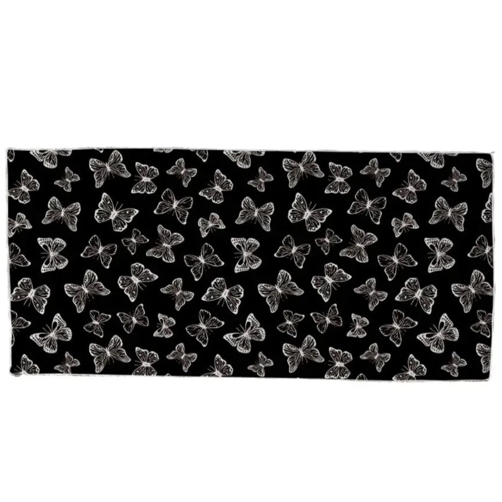 Immerse yourself in the striking contrast of black and white butterflies, meticulously arranged on a deep black background. The carefully drawn details of the butterflies create a chic, contemporary aesthetic that will bring a sense of sophistication to your daily routine. The black and white patterns bring a timeless element of elegance to any setting. This Black and White Butterfly Towel will integrate harmoniously into your bathroom, making every use an artistic experience.