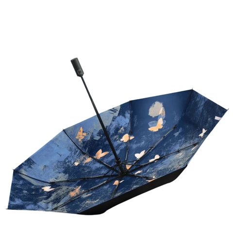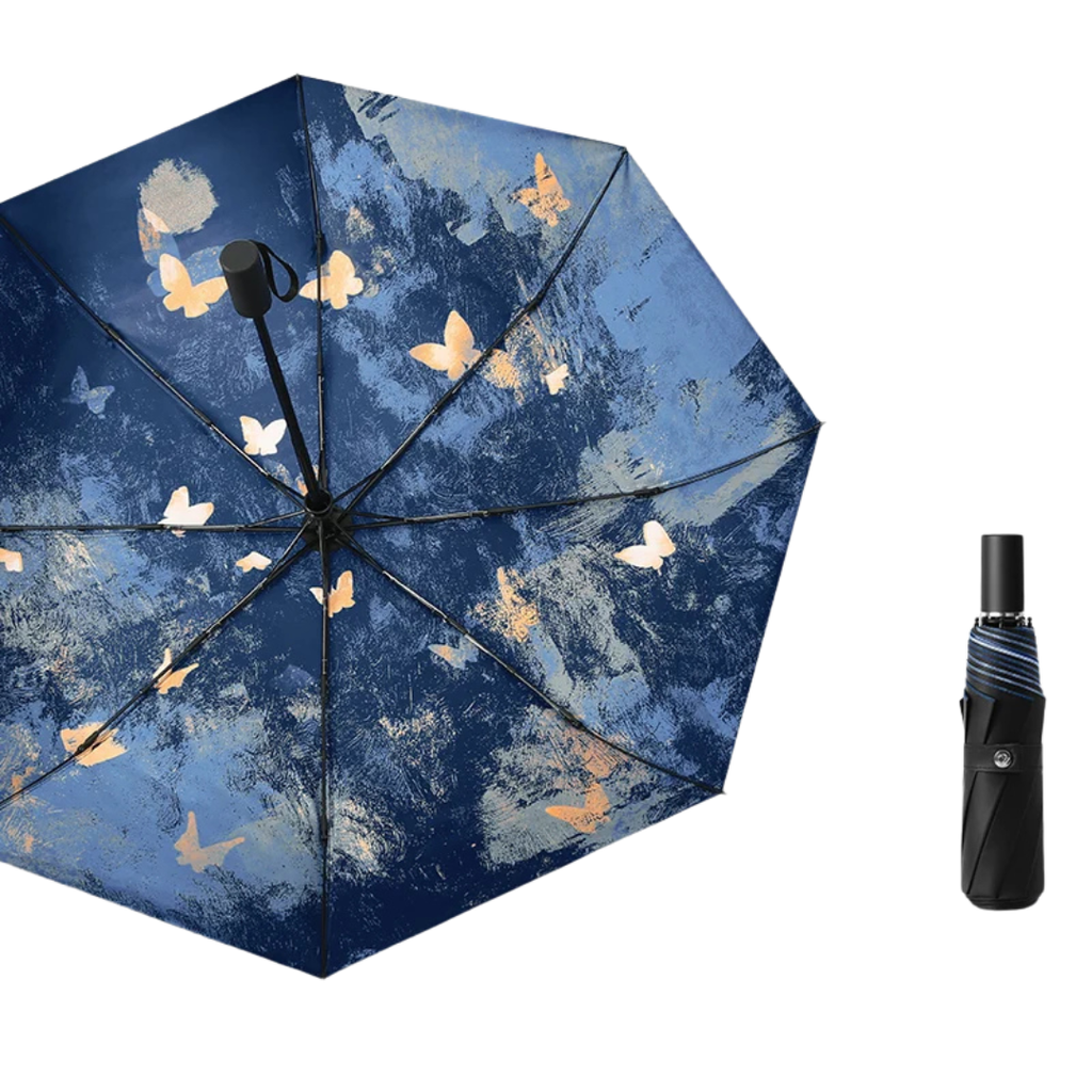 Bring a touch of artistry to rainy days with the Blue Painted Butterfly Art Umbrella, where vivid brushstrokes and fluttering wings come together in a striking visual harmony. This umbrella features a beautifully rendered design that evokes hand-painted elegance, with butterflies set against a painterly backdrop. Crafted with a wind-resistant frame and smooth automatic open-close functionality, it’s as reliable as it is expressive. Lightweight and easy to carry, it transforms a functional item into a moving piece of art — perfect for those who see everyday moments as part of a bigger canvas.