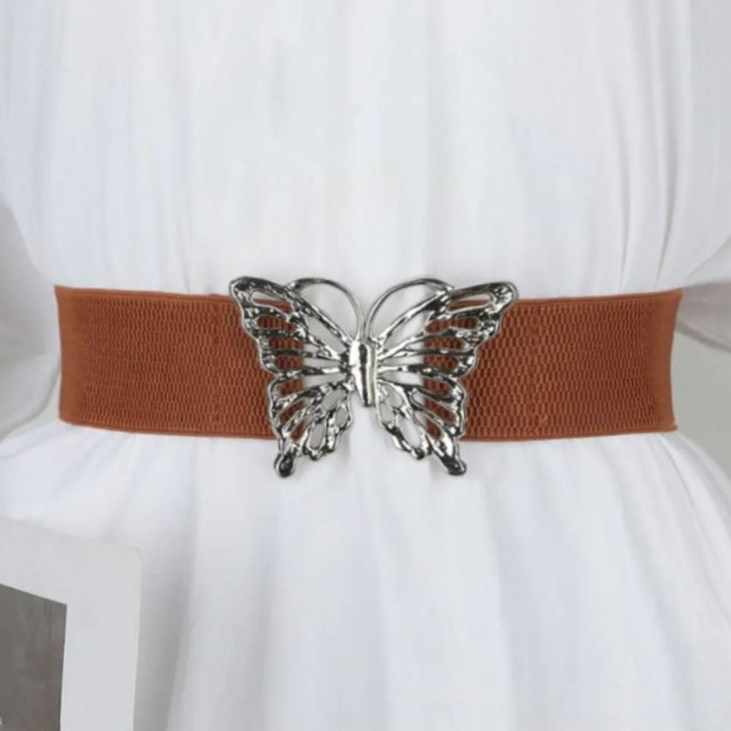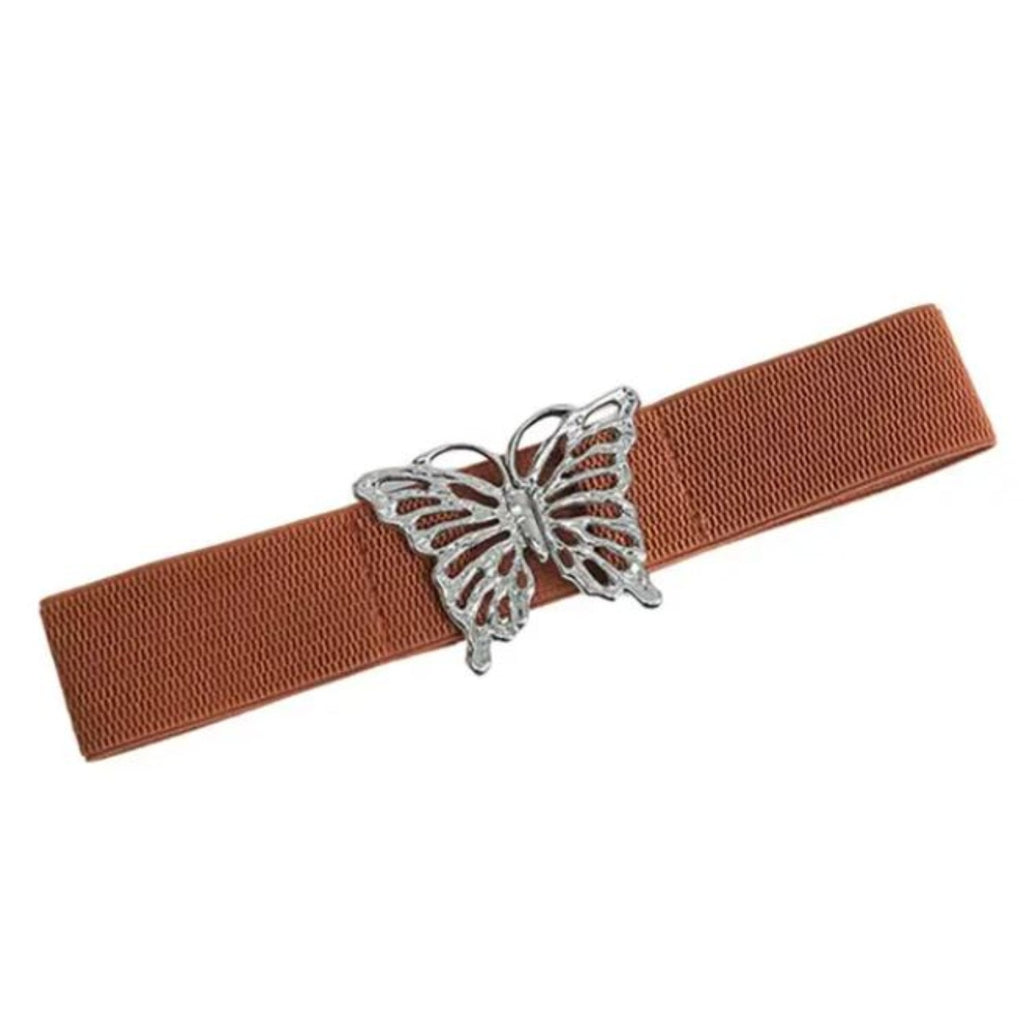 Its elastic design lets you move freely while keeping your pants or skirt in place all day long. Its neutral color and subtle pattern make this Brown Butterfly Belt a versatile accessory that can be worn on any occasion.