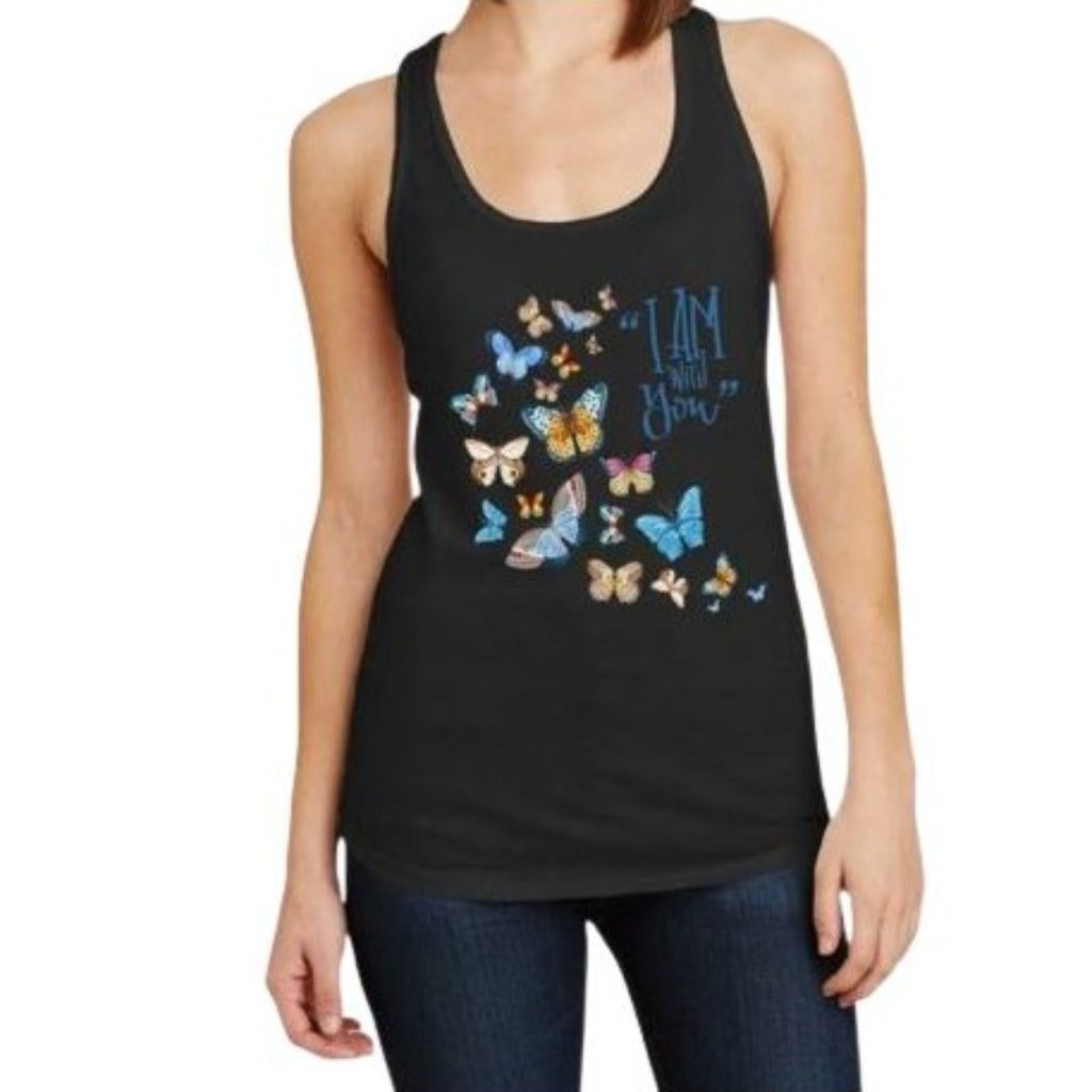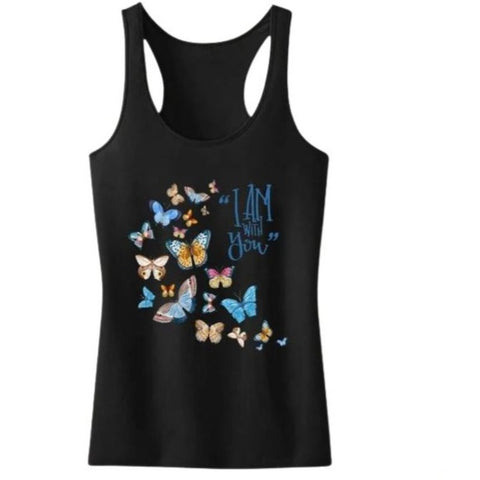 Experience the profound symbolic beauty of our Tank Top with Butterfly Patternand "I am with you" inscription.