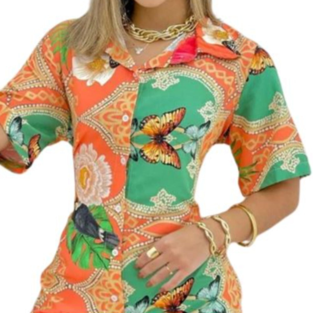 Every detail is lovingly designed to encompass the grace and lightness of butterflies fluttering among colorful flowers, making for a charming springtime addition to your outfit. The multicolored background of this Collar Butterfly Jumpsuit provides a vivid backdrop for the dainty motifs, generating a stunning contrast that draws the eye and arouses admiration.