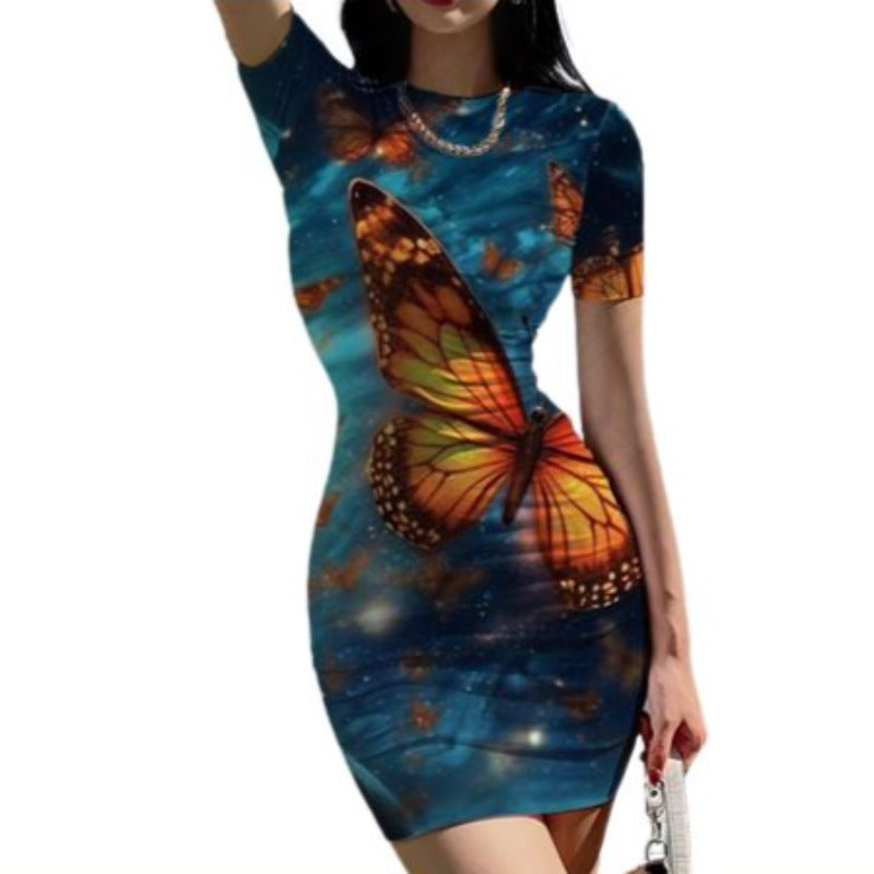 This cornflower blue butterfly tight dress is simply gorgeous. The monarch butterfly decorating it will give you a fascinating look.