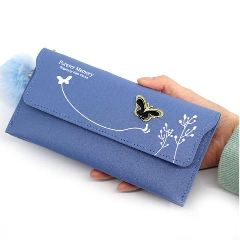 Be ahead of the latest trends with this cornflower blue butterfly wallet. A quality accessory that inspires delicacy. You'll fly beyond limits like a blue morpho butterfly.
