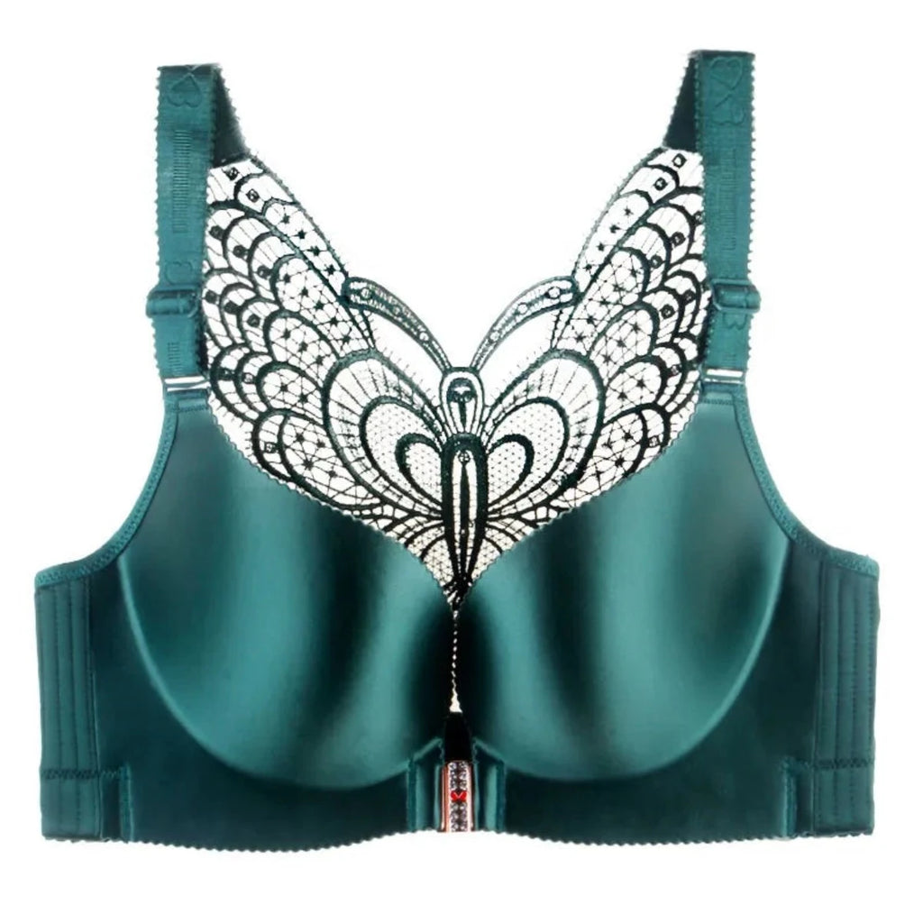 A bra that blends the beauty of butterflies with the delicacy of materials. This bra isn't just an undergarment, it's a stylistic declaration that is the very embodiment of natural elegance and refinement. The striking pattern features a butterfly daintily positioned in the back, adding a touch of seduction and originality to this intimate item. The fresh green color offers a natural, relaxing palette, setting a light, feminine mood. Made with care from nylon, polyester and lycra, our Green Butterfly Bra allies comfort with a perfect fit. High-quality components ensure a soft feel on the skin, while providing optimum support.