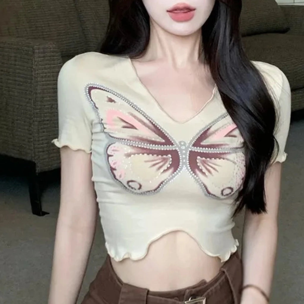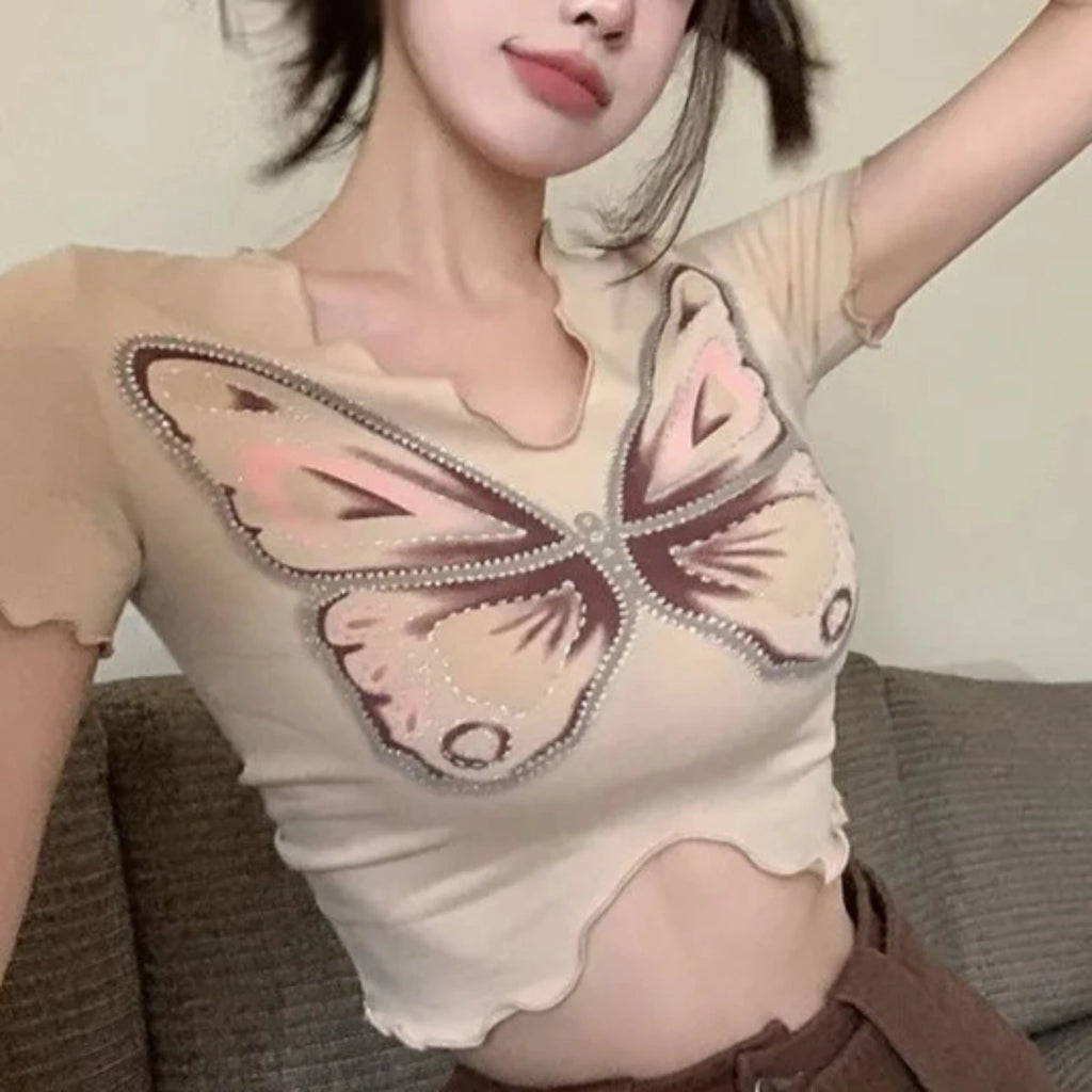 Tap into summertime lightness with our Loose Butterfly Crop Top.