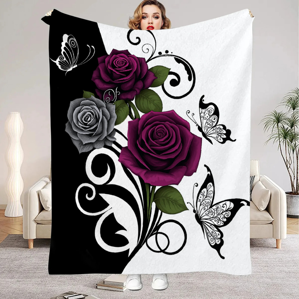 Snuggle in sleek sophistication with the Monochrome Swallowtail Floral Blanket — the perfect blend of elegance, comfort, and a touch of wild beauty. Featuring graceful swallowtail butterflies gliding through a stunning black-and-white floral design, this blanket turns any chill moment into a modern masterpiece. It’s lightweight yet cozy enough to keep you warm through every season. Ideal for minimalists, art lovers, and anyone who believes cozy can still be chic, this black and white butterfly blanket adds a stylish statement to your couch, bed, or reading nook. Warning: may cause spontaneous naps and uncontrollable aesthetic satisfaction.
